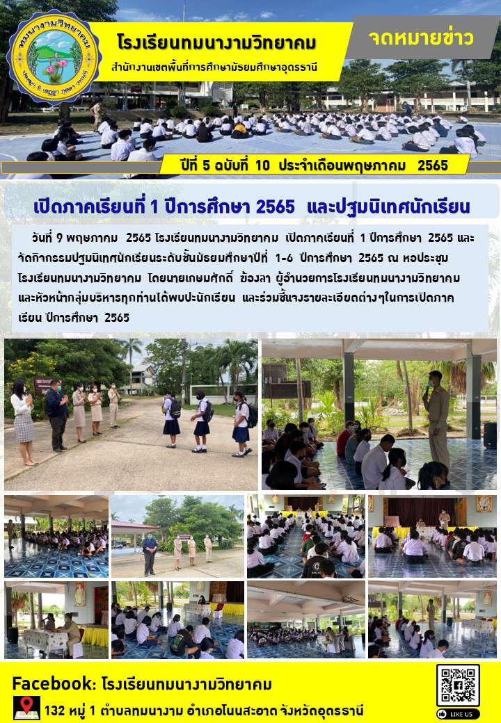 เปิดภาคเรียนที่ 1 ปีการศึกษา 2565 และปฐมนิเทศนักเรียน